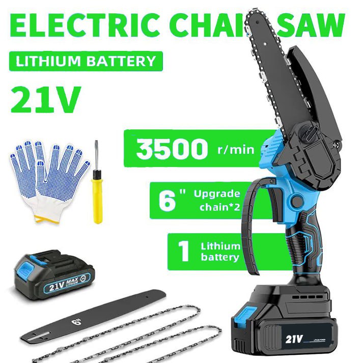 перезаряжаемая электрическая цепная пила, легкая и портативная, имеет длительный срок службы аккумулятора и не повреждает аккумулятор.